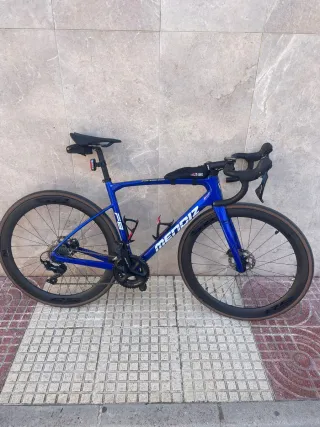 Bicicleta de carretera Mendiz F8 en color azul. - Cuadro de carbono. - Frenos de disco. - Ruedas de perfil de 50cm de fibra de carbono (Nuevas) tienen muy poco tiempo Vendo a gente de alredores de Alicante físicamente Talla M