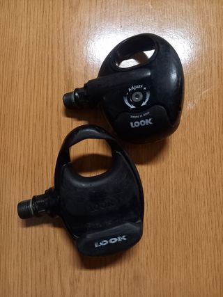 Zapatillas de ciclismo con suela de carbono, talla 44, en buen estado y con calas Look. - Cierre BOA. - Diseño perforado. - Detalles en rojo y verde.