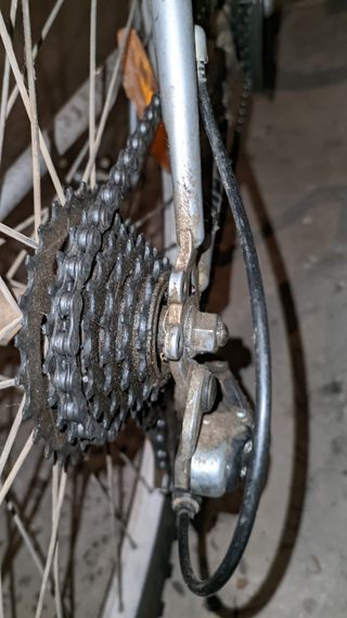 bicicleta del decathlon vintage talla 26" como nueva solo tiene 2 paseos, 21 marchas, 3 platos y 7 piñones. lleva porta botella y mochila con neumatico debajo sillin. cambio shimano que funciona a la perfección.