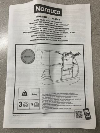 Portabicicletas para maletero de coche de la marca Norauto. Diseñado para transportar 3 bicicletas - Estructura metálica negra. - Incluye correas de sujeción. - Viene con manual de instrucciones. Solo se ha utilizado una vez. Está nuevo. Lo vendo ya que para mi coche actual no me sirve. Entrega en mano en Sant Joan Despí. No contesto preguntas absurdas. No marear. No regatear.