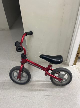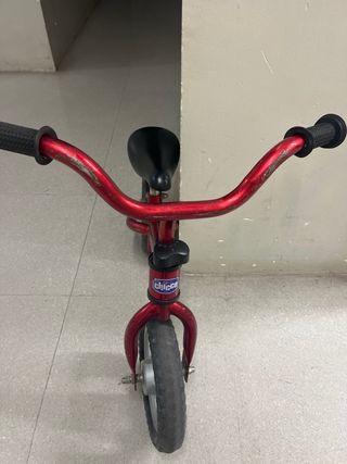 Bicicleta de aprendizaje Chicco Red-Bullet. - Marco de color rojo. - Ruedas de goma. - Asiento negro ajustable. Funciona perfectamente aún y que tiene marcas de un uso intensivo. Uso de dos hermanos. Entrega en mano en Sant Joan Despí (torreblanca)