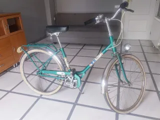 Bicicleta BH clásica en color verde, completamente original. Un modelo funcional y con estilo. - Cuadro de BH. - Ruedas de 26 pulgadas. - Guardabarros delantero y trasero. - Portabultos trasero. - Sillín original.