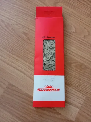 Cadena SUNRACE CN12E para bicicletas de 12 velocidades. - Longitud: 126 eslabones. - Color: Plateado.