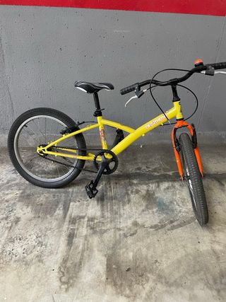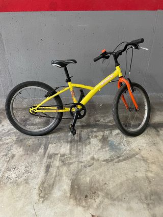 Bicicleta infantil de color amarillo y naranja ideal para los más pequeños. - Ruedas de 20 pulgadas. - Frenos delanteros y traseros. - Sillín ajustable. - Diseño deportivo.