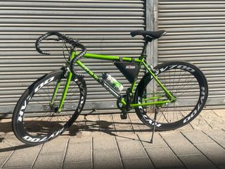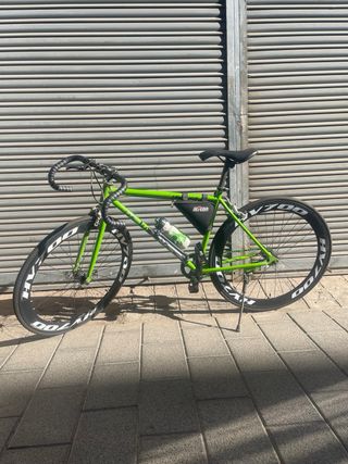 Bicicleta fixie de color verde, en muy buen estado. Se incluye casco. - Cuadro de bicicleta fixie. - Color verde. - Incluye casco. - Bidón de agua. - Porta herramientas. - Incluye Mini Bomba de inflado.