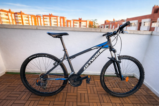 Bicicleta Btwin de montaña en color negro. - Cuadro de aluminio. - Suspensión delantera. - Frenos de disco. - Ruedas de 27.5 pulgadas.