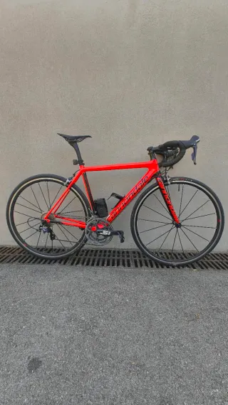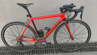 Bicicleta de carretera Cannondale Supersix en color rojo talla 52. - Cuadro de carbono. - Manillar de carbono - Pedales Look - Componentes Shimano Ultegra. 11/32 - Entrego platos 34-50 y 36-52 - Ruedas fulcrum Rapid de zapata, con rodamientos cerámicos. - Frenos de Zapata con pastillas Swiss Stop