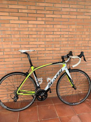 Bicicleta de carretera Massi Pro con un diseño deportivo y llamativo. - Cuadro de Carbono - Llantas Fulcrum Racing - Grupo mixto Shimano Ultrega & 105 - Color blanco y verde lima. - Siempre ha seguido un mantenimiento completo - Esta bicicleta no ha tenido nunca ningun accidente - Talla L (Mido 1.81)