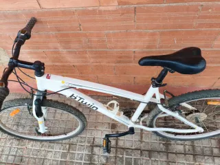 Bicicleta de montaña con transmisión de 3 platos y 7 piñones. - Cuadro de bicicleta. - Ruedas de bicicleta. - Sillín de bicicleta. - Manillar de bicicleta. - Portabidón. - mini bomba inflado. - Incluye Casco. - Cable antirrobo.