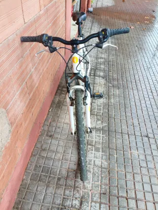 Bicicleta B'Twin en color blanco, ideal para desplazamientos urbanos o paseos. - Cuadro de bicicleta. - Manillar. - Sillín. - Ruedas. - Pedales. Cableado totalmente nuevo ( frenos)