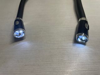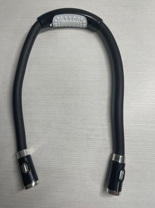 Linterna flexible diseñada para llevar alrededor del cuello, ideal para leer o realizar tareas en condiciones de poca luz. Su diseño ergonómico permite manos libres. - Color negro. - Acabado plateado en los extremos. - Botones de control en los extremos.