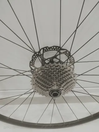 Aluminio (Tubeless Ready) Procedentes Scultura Endurance 5000. Ancho interno 17mm Altura 22mm Bujes VP CLK170F y VP CLK270R con centerlock Con discos de freno Shimano RT54 de 160 mm Cassette Shimano HG700 11-34 Fondos de llanta. En perfecto estado, tienen unos 2.000 km. Las vendo por cambio a carbono.