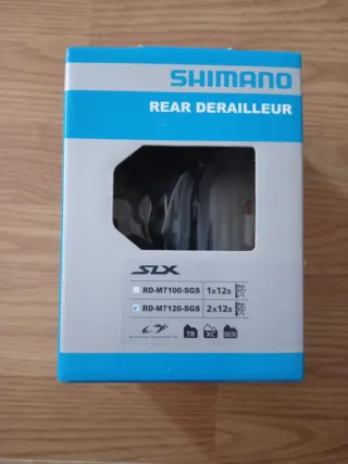 Cambio trasero Shimano SLX modelo RD-M7120-SGS. - Compatible con transmisiones de 12 velocidades. - Longitud de pata SGS (larga). - Diseñado para sistemas de 2x12 velocidades.