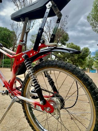 Bicicleta clásica Derbi Panther Cross Mach II de los años 70-80 Modelo de colección personal. 100% funcional. Fue restaurada manteniendo al máximo sus elementos originales. -Pulido de tornillería y manillar -Pintado de guardabarros, manetas de freno y torretas del asiento. -Limpieza y engrase de rodamientos de tija, bujes del pedalier y ruedas, piñón... -Limpieza y lijado de mordazas de freno. -Faro pasado a bombilla led. ¡¡Una joya de la época!!