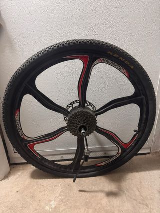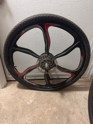 Llanta delantera y trasera para bicicleta eléctrica de 26 pulgadas. Las cuatro caras en buen estado general. Tan solo dos caras con pequeños picados (ver fotos) -Marca navigate. -De aleación de magnesio Se entrega una sin cubierta y la otra con la cubierta Kenda, aún aprovechable.