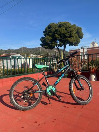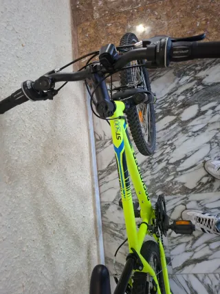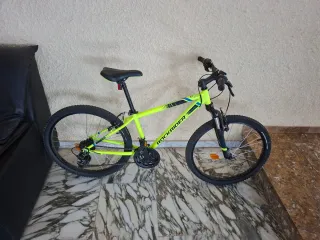 Bicicleta Decathlon ST 500 de color verde lima. Está como nueva. Poquísimo uso. - Cuadro de aluminio. - Frenos de disco. - Suspensión delantera. - Ruedas 24 pulgadas