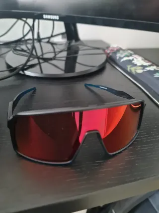 Gafas de sol Oakley Sutro Prizm Torch con lentes rojas reflectantes. - Diseño deportivo y moderno. - Montura negra. - Patillas azules. Autenticas con ticket de compra
