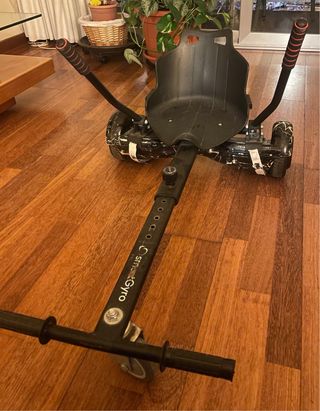 Hoverboard eléctrico con diseño en color negro efecto rayos, junto con su accesorio kart SmartGyro para convertirlo en un go-kart muy divertido y fácil de manejar. ✅ Funciona perfectamente ✅ Batería en buen estado ✅ El kart es ajustable en longitud ✅ Controles por palancas muy intuitivos ✅ Ideal para niños. ✅ Cargador ‼️ No tiene caja ni el Hoverboard ni la silla‼️ El hoverboard tiene la pintura rascada por las partes donde se apoya la silla, pero todo funciona sin problema. La batería la cambiamos hace menos de un año por una mejor. Perfecto para regalar o para disfrutar tanto en interiores como exteriores. Precio negociable.