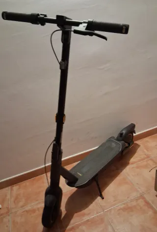 Patinete eléctrico de color negro, ideal para desplazamientos urbanos. - Diseño moderno y funcional. - Manillar ajustable en altura. - Plataforma antideslizante.