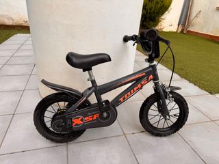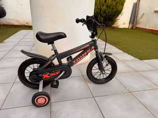 Bicicleta infantil Toimsa Speed XSP en color negro y naranja. Ideal para los más pequeños. - Ruedines extraíbles. - Diseño deportivo.