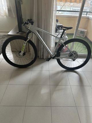 Bicicleta de montaña Rockrider Race 700 en color blanco. Modelo de 2025. - Cuadro de aluminio ligero. - Ruedas 29” - Suspensión delantera. - Frenos de disco hidráulicos. - Transmisión de 11 velocidades. - Talla L. - Horquilla Manitou 110 mm. - Bloqueo de suspensión en el manillar. - Suspensión de aceite y aire. - Bici con poco uso y bien cuidada. - Garantía de tienda 3 años ( comprada hace 5 meses). - Vendo para comprar una doble suspensión. - Precio negociable, acepto ofertas razonables.