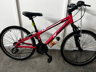 Bicicleta infantil de color rojo. - Cuadro de metal. - cambio de marchas Shimano - 21 marchas - Ruedas de 20 pulgadas. - Incluye portabidón.
