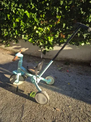 Triciclo infantil de color azul claro, ideal para los más pequeños. - Asiento con respaldo. - Manillar para empujar. - Ruedas resistentes. - Cambio posición ruedas, bici o triciclo