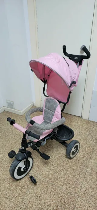 Triciclo de la marca Kinderkraft en color rosa. Un compañero ideal para los paseos. - Asiento acolchado con diseño a cuadros. - Capota protectora. - Reposapiés. - Cesta de almacenamiento.