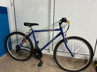 Bicicleta de montaña con cuadro de acero. - Rueda de 26 pulgadas con cubierta de tacos - 3 platos y cambios traseros operativos - Frenos de disco.