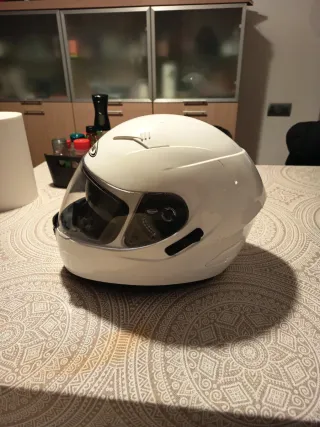 Casco de moto marca Zeus en talla S. Diseño integral con pantalla oscura. - Color blanco. - Talla S.