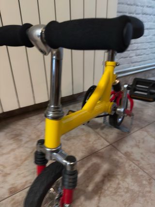 Pequeña bicicleta decorativa de color amarillo brillante. Ideal para añadir un toque de estilo. - Marco de metal amarillo. - Asiento negro. - Ruedas pequeñas. Muy chula y muy pesada 😂