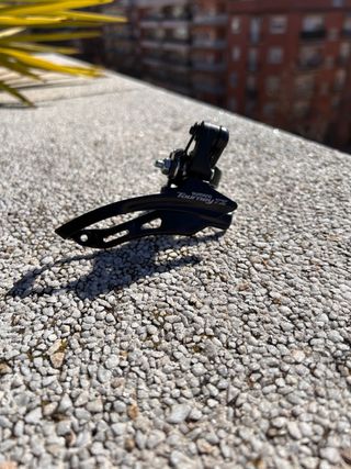 Desviador delantero de la marca Shimano, modelo Tourney Nunca se ha usado - Color negro. - Diseño para bicicleta.