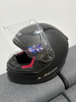 Casco de moto LS2 en color negro, con visor transparente y funda protectora. - Marca: LS2 - Color: Negro - Visor: Transparente - Incluye funda de tela negra ademas vicera son estrenar transparente chaqueta com proteccion