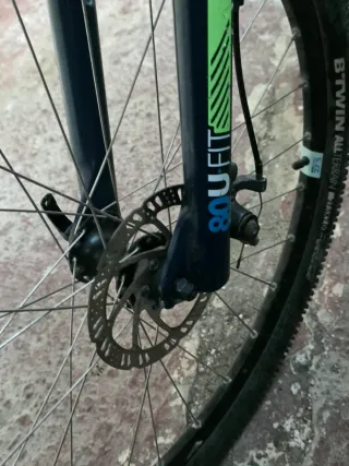 Bicicleta de montaña BTWIN en color blanco, casi sin usar y en buen estado. - Cuadro de aluminio. - Frenos de disco. - Suspensión delantera. - Ruedas de 27.5 pulgadas.