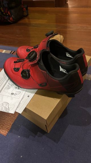 Zapatillas de ciclismo Shimano XC702 en color rojo y negro. Talla 42 Usadas solo dos veces, por error en la talla, como nuevas - Cierre BOA. - Diseño deportivo. - Suela para MTB