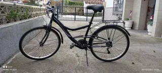 Bicicleta urbana de color negro. - Cuadro de metal. - Ruedas de 26 pulgadas. - Sillín negro. - Portaequipajes trasero.