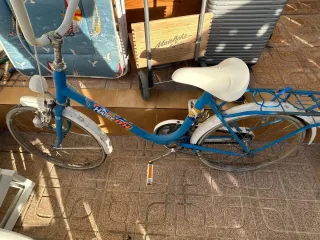 Clásica Bicicleta BH Happy original clor azul– Joya vintage para coleccionistas Preciosa bicicleta BH Happy de los años 80, totalmente original y conservada en su estado auténtico. Una pieza llena de encanto y nostalgia, perfecta para coleccionistas o amantes del estilo retro. Su color azul clásico, el sillín blanco original y los detalles BH la convierten en un modelo difícil de encontrar hoy en día. Está completa, con guardabarros, portaequipajes metálico y la llave original para desmontar las ruedas, un detalle que la hace aún más especial.