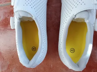 Zapatos de ciclismo blancos con un diseño perforado para mayor transpirabilidad. Cuentan con un sistema de cierre de dial. - Color blanco. - Diseño perforado. - Cierre de dial.