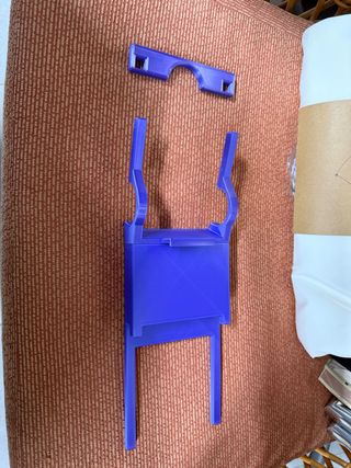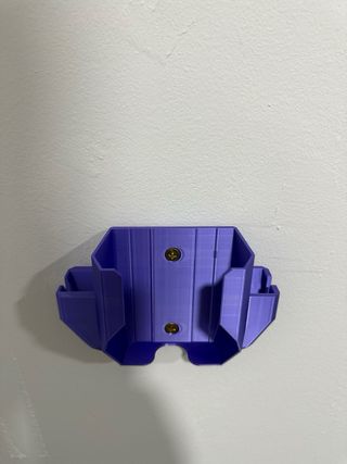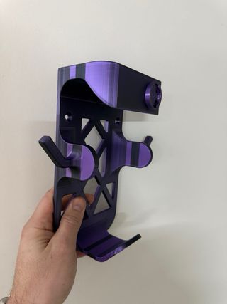 Soporte para cargador de batería de ebike Bosch. Mantiene el cargador y los cables organizados. - Color: Morado y negro. - Material: Plástico.