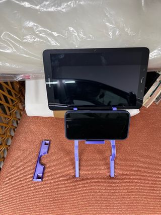 Soporte de manillar en color morado diseñado para sujetar tablets y teléfonos móviles. - Fabricado en plástico resistente. - Diseño ergonómico para manillares.