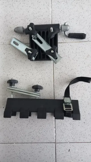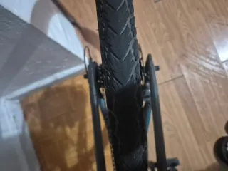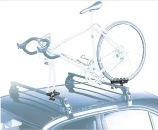 Sistema de transporte, para llevar bicicleta con la rueda delantera desmontada (ver foto). Con sistema de cierre rápido para horquilla delantera y anclaje de la trasera. Tengo otro igual por si te interesa comprar 2 Poco uso