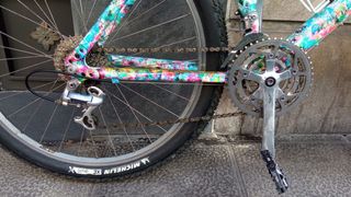 Bicicleta de montaña con un diseño único y llamativo. - Cuadro con pintura multicolor estilo salpicadura. - Componentes Shimano. - Neumáticos Michelin XC Dry2.