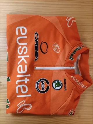 Maillot de ciclismo del equipo Euskaltel Euskadi de la temporada 2012. Diseño en color naranja con detalles. - Logo de Orbea. - Logo de Skoda. - Logo de MOA. - Detalle UCI World Tour. La cremallera fue sustituida por una nueva, el maillot se encuentra en buen estado, aunque la etiqueta fue retirada pq molestaba, manías..jejeje.