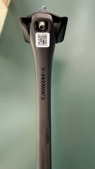 Tija de sillín para Specialized Tarmac SL8 de carbono. - Longitud: 380mm - Retroceso: 15mm Solo ha sido montada para la biomecánica y quitada. Perfecto estado, es la versión larga.