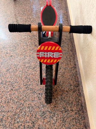 Bicicleta de equilibrio de madera con diseño de bombero, ideal para los más pequeños. - Ruedas de goma. - Asiento acolchado. - Diseño llamativo con detalles de bombero.