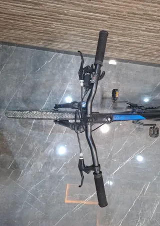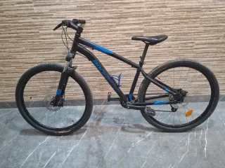 El mas rapido se la lleva. Bicicleta de montaña Rockrider ST 120 en color negro con detalles en azul. Ideal para iniciarse en el ciclismo.Cambio por alguna que me interese. - Cuadro de aluminio. - Suspensión delantera. - Frenos de disco. - Ruedas de 27.5 pulgadas. - Talla M