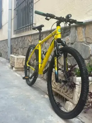 Bicicleta de montaña en color amarillo, marca DEED. 🚲 Se encuentra en buen estado y funciona bien. Ruedas de 26" pulgadas 👉 Incluye luz, portabidones, neumáticos kenda, frenos Shimano,etc.. Cualquier cosa preguntar.