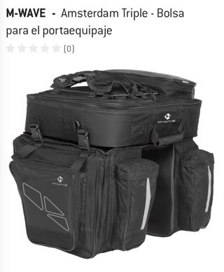 Descripción M-Wave Alforja Amsterdam Triple 96L Resumen de la descripción Conquista cualquier viaje con la alforja M-WAVE Amsterdam Triple 96L, tu compañera de carga definitiva. Este robusto sistema de bolsas traseras de 3 piezas ofrece una colosal capacidad de almacenamiento de 96 litros, perfecta para giras extensas o cargas pesadas. Su diseño inteligente cuenta con dos grandes bolsas laterales con prácticas cremalleras de acceso lateral y bolsillos auxiliares integrados, que también sirven como portabotellas. Fabricada con poliéster 600D duradero y con detalles reflectantes. Nunca usada