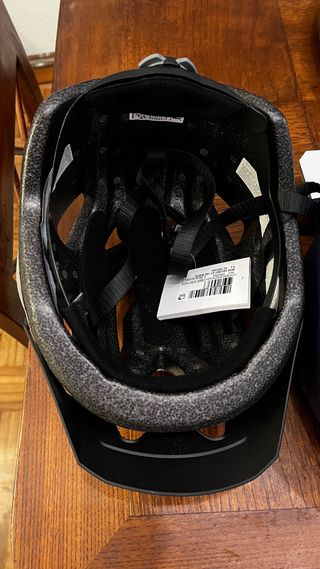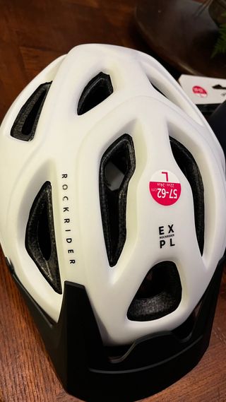Casco de bicicleta Rockrider en color blanco y talla L. - Diseño con ventilación. - Visera integrada. - Ajuste regulable.