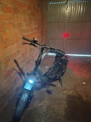 Bicicleta eléctrica plegable con un diseño moderno y funcional. - Rueda delantera ancha. - Faro LED delantero. - Timbre en el manillar. - Guardabarros delantero y trasero.